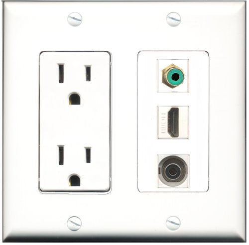 RiteAV - 15 Amp Power Outlet 1 Port HDMI 1 Port RCA Green 1 Port 3.5mm Decorative Wall Plate