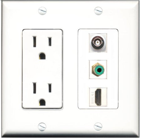 RiteAV - 15 Amp Power Outlet 1 Port HDMI 1 Port RCA Green 1 Port BNC Decorative Wall Plate