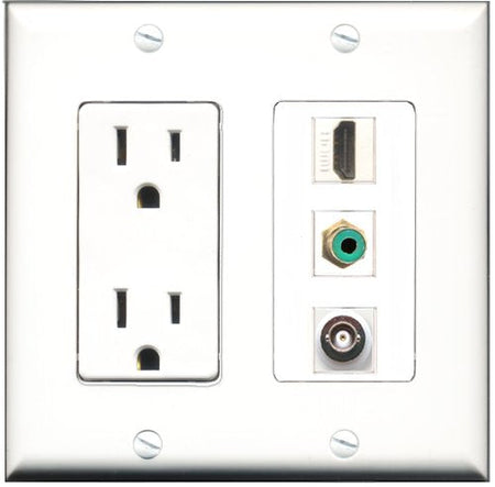 RiteAV - 15 Amp Power Outlet 1 Port HDMI 1 Port RCA Green 1 Port BNC Decorative Wall Plate