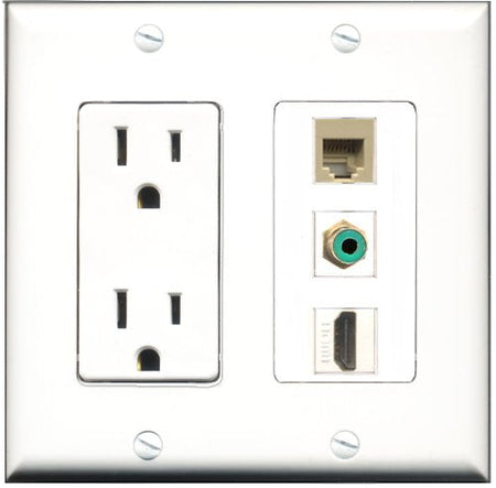 RiteAV - 15 Amp Power Outlet 1 Port HDMI 1 Port RCA Green 1 Port Phone Beige Decorative Wall Plate