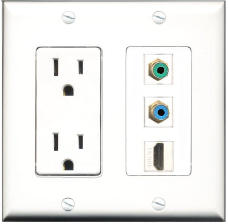 RiteAV - 15 Amp Power Outlet 1 Port HDMI 1 Port RCA Green 1 Port RCA Blue Decorative Wall Plate