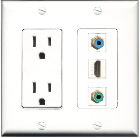 RiteAV - 15 Amp Power Outlet 1 Port HDMI 1 Port RCA Green 1 Port RCA Blue Decorative Wall Plate