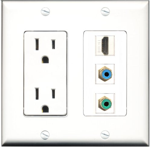 RiteAV - 15 Amp Power Outlet 1 Port HDMI 1 Port RCA Green 1 Port RCA Blue Decorative Wall Plate