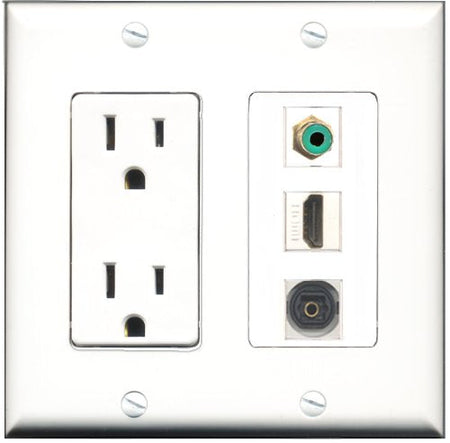 RiteAV - 15 Amp Power Outlet 1 Port HDMI 1 Port RCA Green 1 Port Toslink Decorative Wall Plate