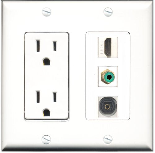 RiteAV - 15 Amp Power Outlet 1 Port HDMI 1 Port RCA Green 1 Port Toslink Decorative Wall Plate