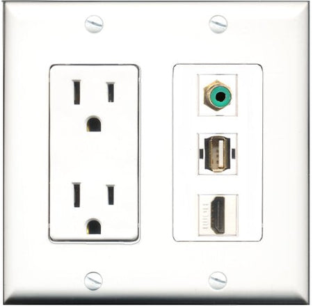 RiteAV - 15 Amp Power Outlet 1 Port HDMI 1 Port RCA Green 1 Port USB A-A Decorative Wall Plate