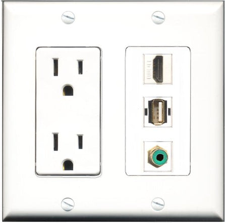 RiteAV - 15 Amp Power Outlet 1 Port HDMI 1 Port RCA Green 1 Port USB A-A Decorative Wall Plate