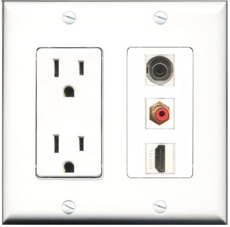 RiteAV - 15 Amp Power Outlet 1 Port HDMI 1 Port RCA Red 1 Port 3.5mm Decorative Wall Plate