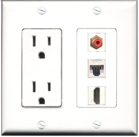 RiteAV - 15 Amp Power Outlet 1 Port HDMI 1 Port RCA Red 1 Port Cat5e Ethernet White Decorative Wall Plate