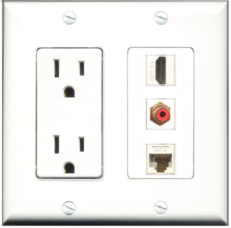 RiteAV - 15 Amp Power Outlet 1 Port HDMI 1 Port RCA Red 1 Port Cat6 Ethernet Ethernet White Decorative Wall Plate
