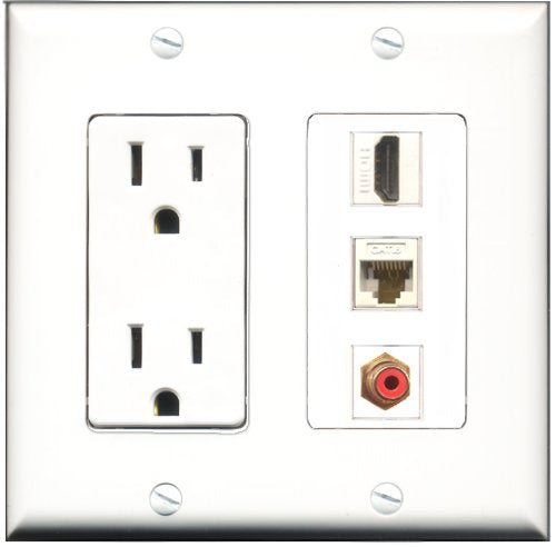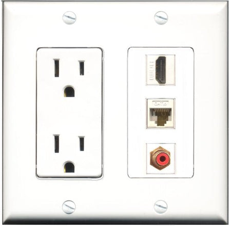 RiteAV - 15 Amp Power Outlet 1 Port HDMI 1 Port RCA Red 1 Port Cat6 Ethernet Ethernet White Decorative Wall Plate