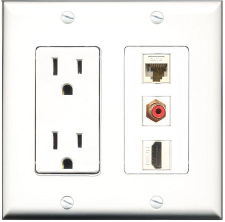RiteAV - 15 Amp Power Outlet 1 Port HDMI 1 Port RCA Red 1 Port Cat6 Ethernet Ethernet White Decorative Wall Plate