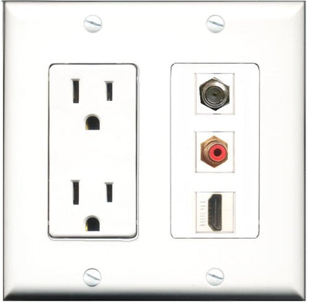 RiteAV - 15 Amp Power Outlet 1 Port HDMI 1 Port RCA Red 1 Port Coax Decorative Wall Plate