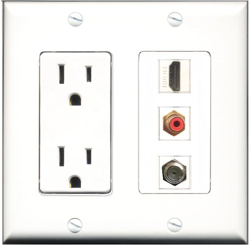 RiteAV - 15 Amp Power Outlet 1 Port HDMI 1 Port RCA Red 1 Port Coax Decorative Wall Plate