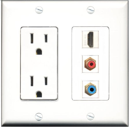 RiteAV - 15 Amp Power Outlet 1 Port HDMI 1 Port RCA Red 1 Port RCA Blue Decorative Wall Plate