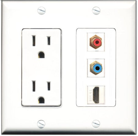 RiteAV - 15 Amp Power Outlet 1 Port HDMI 1 Port RCA Red 1 Port RCA Blue Decorative Wall Plate