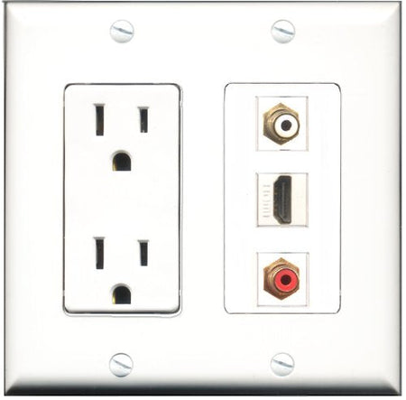RiteAV - 15 Amp Power Outlet 1 Port HDMI 1 Port RCA Red 1 Port RCA White Decorative Wall Plate