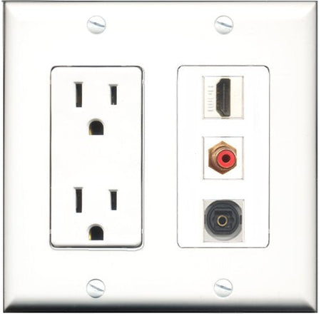 RiteAV - 15 Amp Power Outlet 1 Port HDMI 1 Port RCA Red 1 Port Toslink Decorative Wall Plate