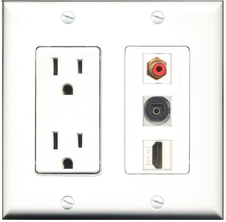 RiteAV - 15 Amp Power Outlet 1 Port HDMI 1 Port RCA Red 1 Port Toslink Decorative Wall Plate