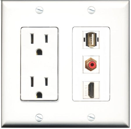 RiteAV - 15 Amp Power Outlet 1 Port HDMI 1 Port RCA Red 1 Port USB A-A Decorative Wall Plate