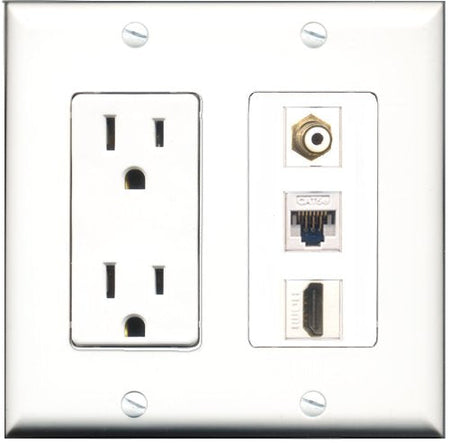 RiteAV - 15 Amp Power Outlet 1 Port HDMI 1 Port RCA White 1 Port Cat5e Ethernet White Decorative Wall Plate