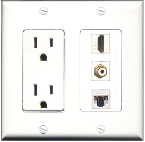 RiteAV - 15 Amp Power Outlet 1 Port HDMI 1 Port RCA White 1 Port Cat5e Ethernet White Decorative Wall Plate