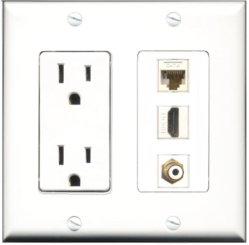 RiteAV - 15 Amp Power Outlet 1 Port HDMI 1 Port RCA White 1 Port Cat6 Ethernet Ethernet White Decorative Wall Plate