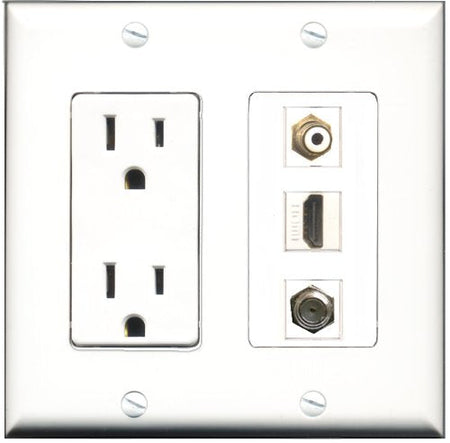 RiteAV - 15 Amp Power Outlet 1 Port HDMI 1 Port RCA White 1 Port Coax Decorative Wall Plate