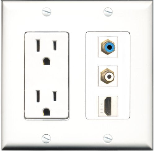 RiteAV - 15 Amp Power Outlet 1 Port HDMI 1 Port RCA White 1 Port RCA Blue Decorative Wall Plate
