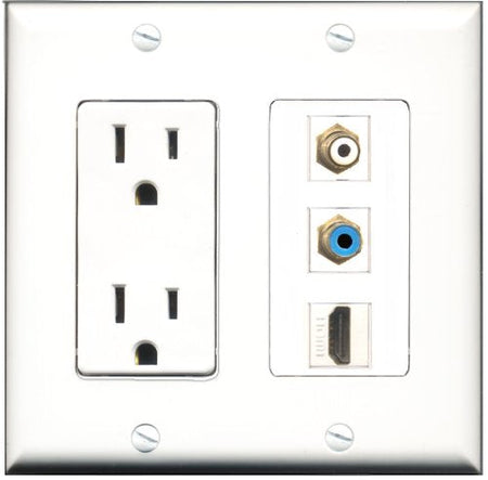 RiteAV - 15 Amp Power Outlet 1 Port HDMI 1 Port RCA White 1 Port RCA Blue Decorative Wall Plate