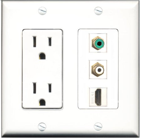 RiteAV - 15 Amp Power Outlet 1 Port HDMI 1 Port RCA White 1 Port RCA Green Decorative Wall Plate