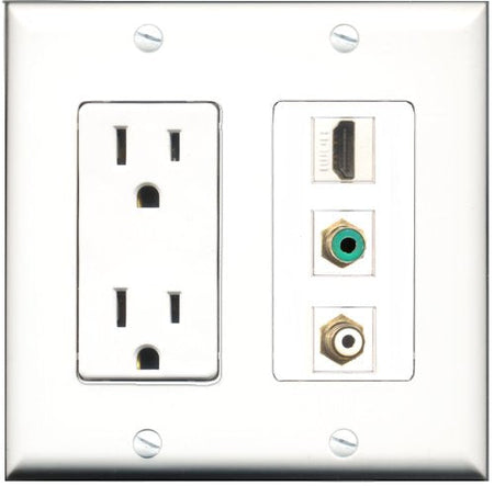 RiteAV - 15 Amp Power Outlet 1 Port HDMI 1 Port RCA White 1 Port RCA Green Decorative Wall Plate