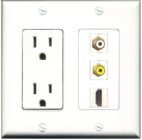 RiteAV - 15 Amp Power Outlet 1 Port HDMI 1 Port RCA White 1 Port RCA Yellow Decorative Wall Plate