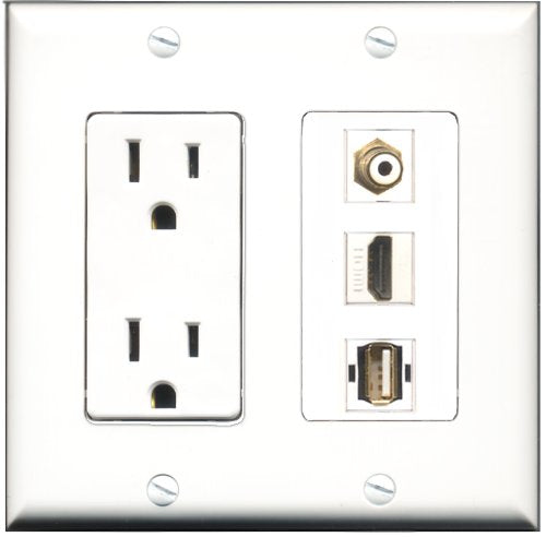 RiteAV - 15 Amp Power Outlet 1 Port HDMI 1 Port RCA White 1 Port USB A-A Decorative Wall Plate