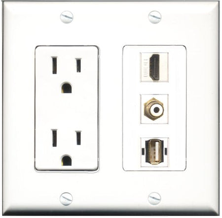 RiteAV - 15 Amp Power Outlet 1 Port HDMI 1 Port RCA White 1 Port USB A-A Decorative Wall Plate