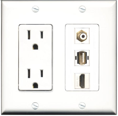 RiteAV - 15 Amp Power Outlet 1 Port HDMI 1 Port RCA White 1 Port USB A-A Decorative Wall Plate