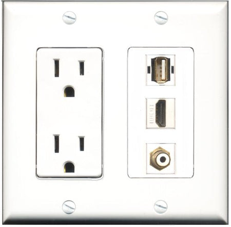 RiteAV - 15 Amp Power Outlet 1 Port HDMI 1 Port RCA White 1 Port USB A-A Decorative Wall Plate