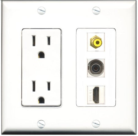 RiteAV - 15 Amp Power Outlet 1 Port HDMI 1 Port RCA Yellow 1 Port 3.5mm Decorative Wall Plate