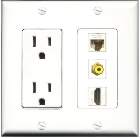 RiteAV - 15 Amp Power Outlet 1 Port HDMI 1 Port RCA Yellow 1 Port Cat6 Ethernet Ethernet White Decorative Wall Plate