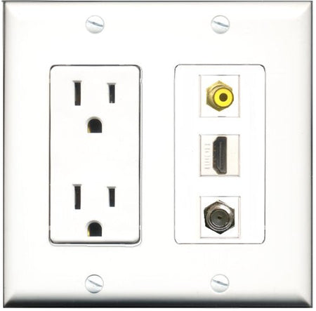 RiteAV - 15 Amp Power Outlet 1 Port HDMI 1 Port RCA Yellow 1 Port Coax Decorative Wall Plate