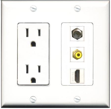 RiteAV - 15 Amp Power Outlet 1 Port HDMI 1 Port RCA Yellow 1 Port Coax Decorative Wall Plate