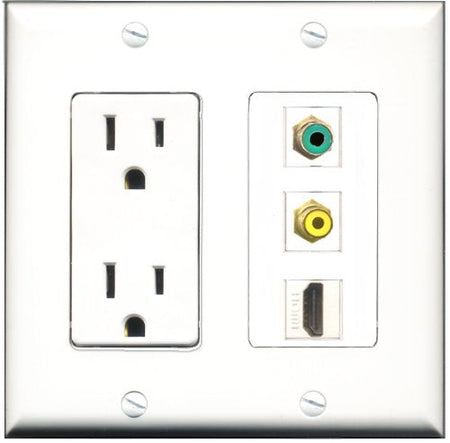 RiteAV - 15 Amp Power Outlet 1 Port HDMI 1 Port RCA Yellow 1 Port RCA Green Decorative Wall Plate