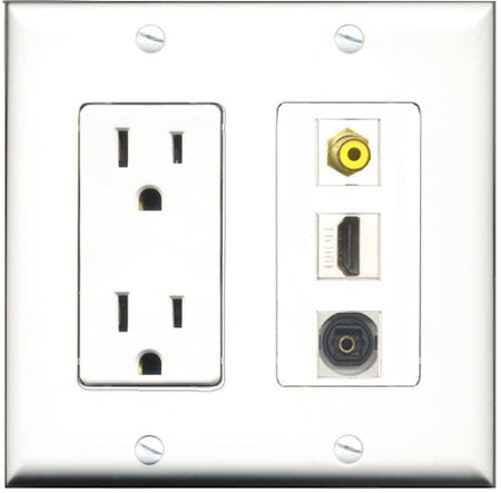 RiteAV - 15 Amp Power Outlet 1 Port HDMI 1 Port RCA Yellow 1 Port Toslink Decorative Wall Plate