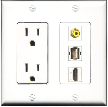 RiteAV - 15 Amp Power Outlet 1 Port HDMI 1 Port RCA Yellow 1 Port USB A-A Decorative Wall Plate