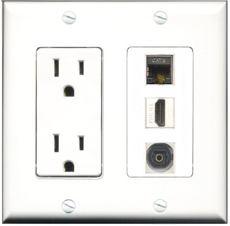 RiteAV - 15 Amp Power Outlet 1 Port HDMI 1 Port Shielded Cat6 Ethernet Ethernet 1 Port Toslink Decorative Wall Plate