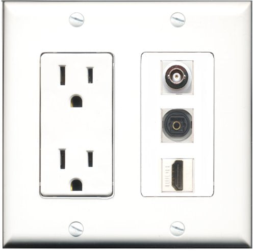 RiteAV - 15 Amp Power Outlet 1 Port HDMI 1 Port Toslink 1 Port BNC Decorative Wall Plate