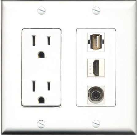RiteAV - 15 Amp Power Outlet 1 Port HDMI 1 Port USB A-A 1 Port 3.5mm Decorative Wall Plate