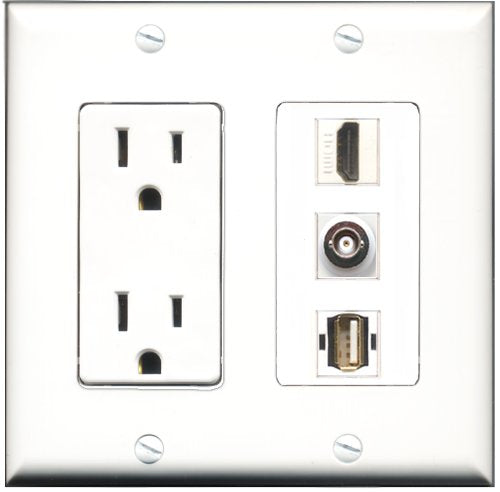 RiteAV - 15 Amp Power Outlet 1 Port HDMI 1 Port USB A-A 1 Port BNC Decorative Wall Plate