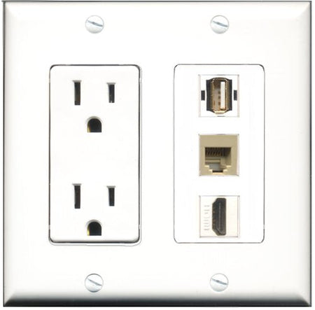 RiteAV - 15 Amp Power Outlet 1 Port HDMI 1 Port USB A-A 1 Port Phone Beige Decorative Wall Plate