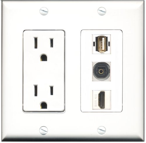 RiteAV - 15 Amp Power Outlet 1 Port HDMI 1 Port USB A-A 1 Port Toslink Decorative Wall Plate